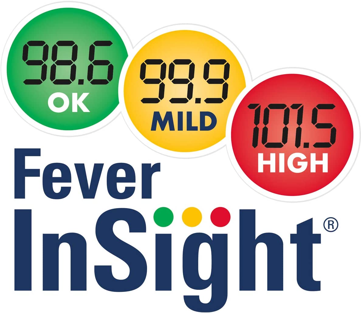 - EASY TO READ – The color coded Fever InSight helps get temperature readings at a glance, and understand them easily. A green display suggests a normal temperature, yellow signifies an elevated temperature and a red display indicates a high temperature