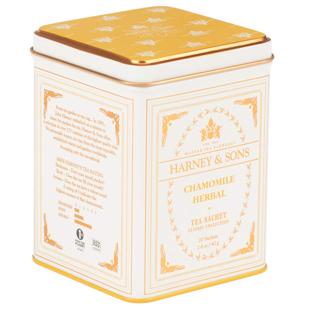 Harney & Sons Chamomile Herbal Tea, Classic Tin, 20 Sachets, white