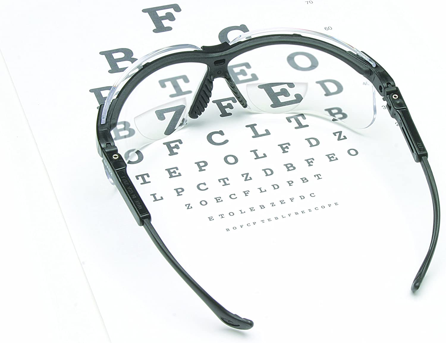 Safety eyewear features a magnification lens for workers performing close-up inspections, fine-detail work or reading small print. Ultra-dura, anti-scratch coating resists being damaged to maintain visibility. Soft browguard absorbs and diffuses impact for safe use. Flexible "fingers" on the nosepiece minimize slippage to provide a secure fit. Padded temples and tips provide comfort during extended wear. Eyewear meets the ANSI Z87.1-2010 standard and is certified to the requirements of the CSA Z94.3 standard.