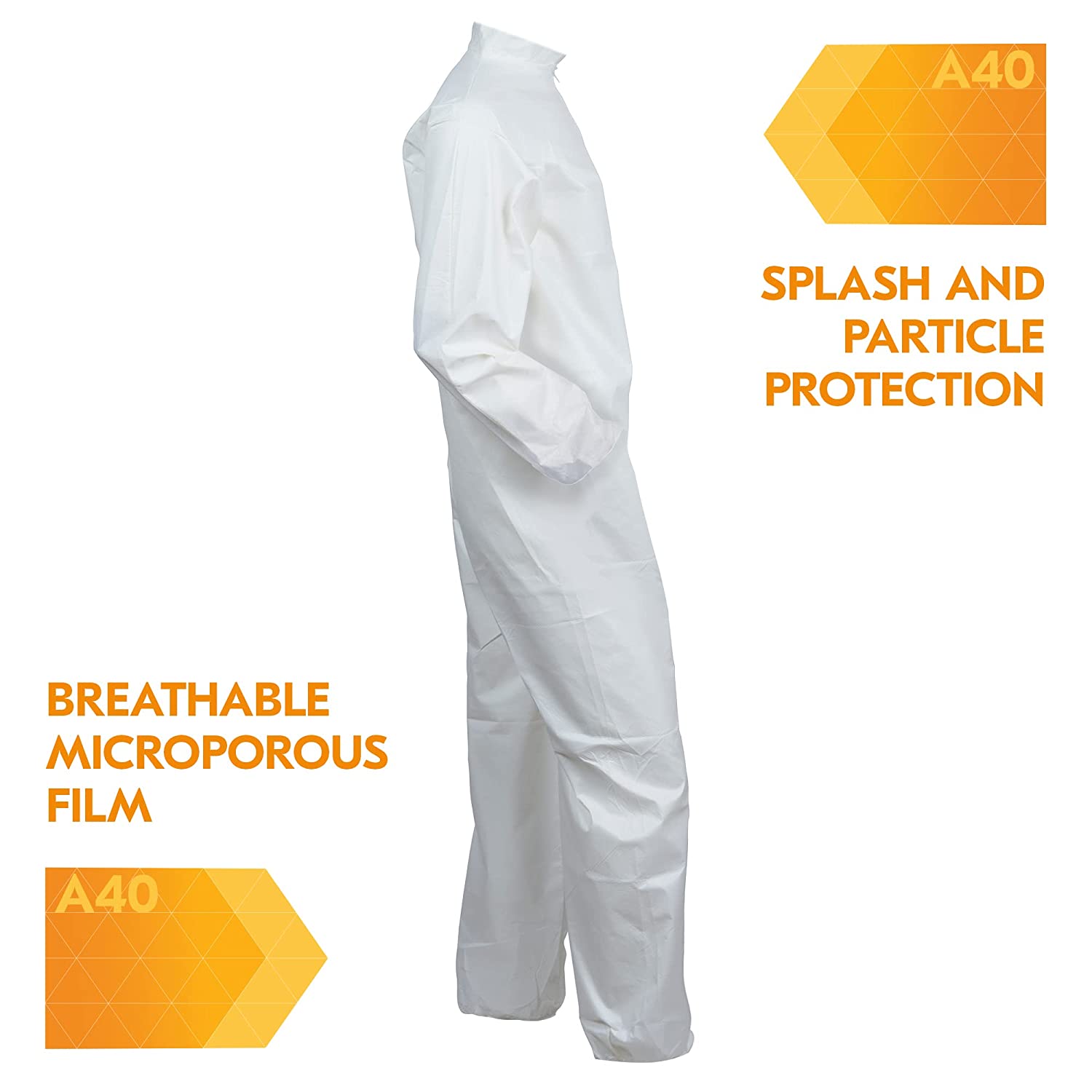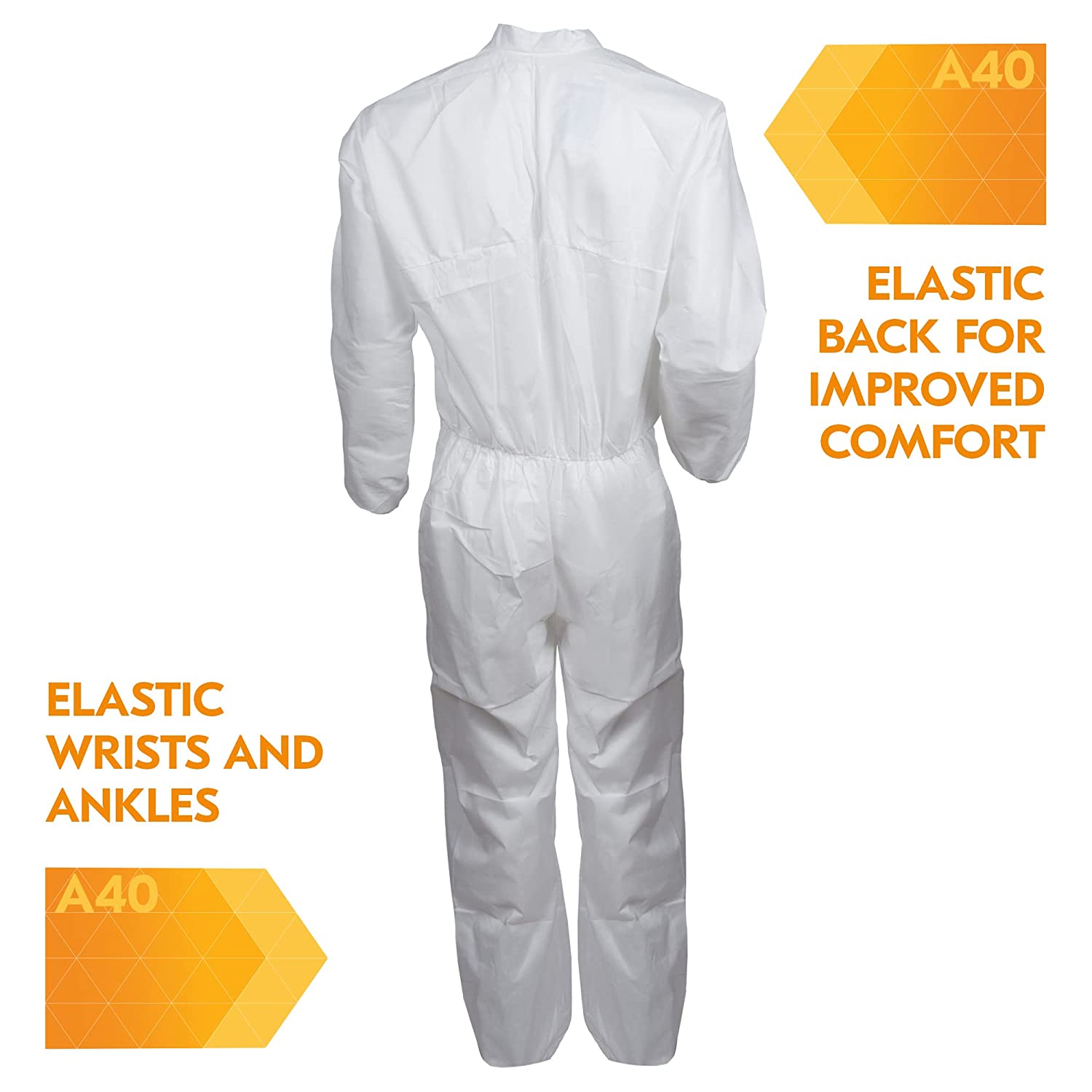 KleenGuard Coveralls A 40 Liquid and Particle Protection Apparel (44303), White, Large, 25 Garments / Case