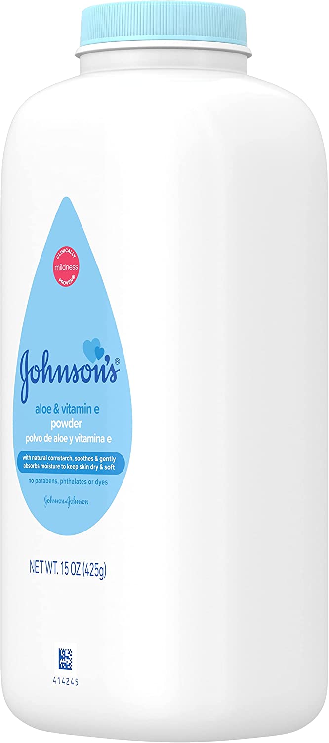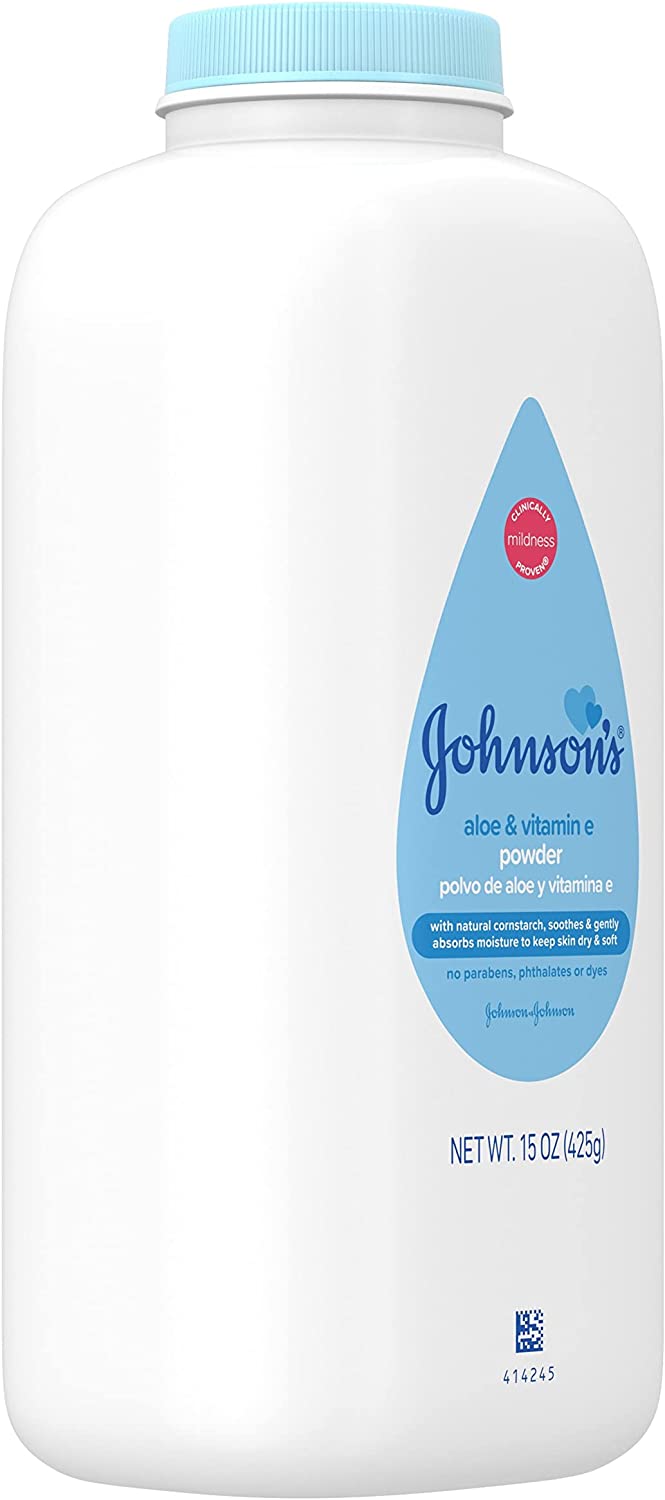 15-ounces of Johnson's baby powder with naturally derived cornstarch, aloe, and vitamin E provides a gentle way to soothe your baby's skin and leave it feeling soft and smooth