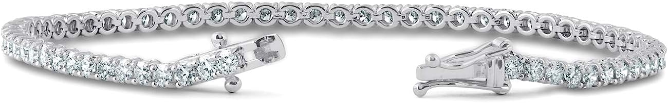• 14k White Gold Round Diamond : This women's bracelet features round brilliant cut natural diamonds. All diamonds are prong set in a solid 14k white gold double locking clasp setting. 14k