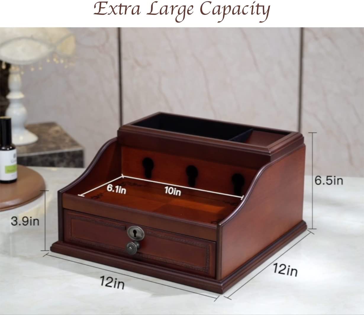 Arolly Wood Finish Valet Charging Station Multi Device Cord Organizer with Pull Out Drawer Compatible with iPhone, Samsung, and other Smartphones, Can Store Watches, Jewelry and more