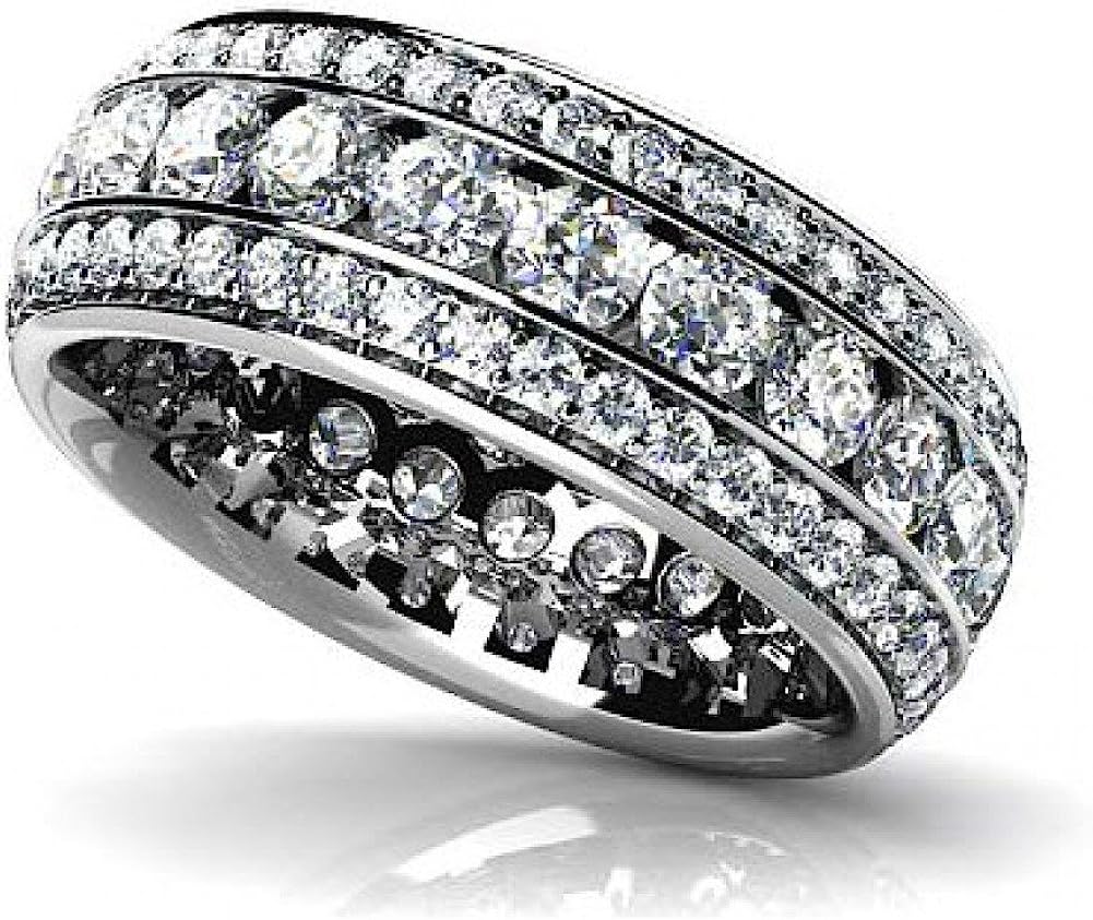 Madina Jewelry 5.00 ct Ladies Three Row Round Cut Diamond Eternity Wedding Band Ring in Platinum