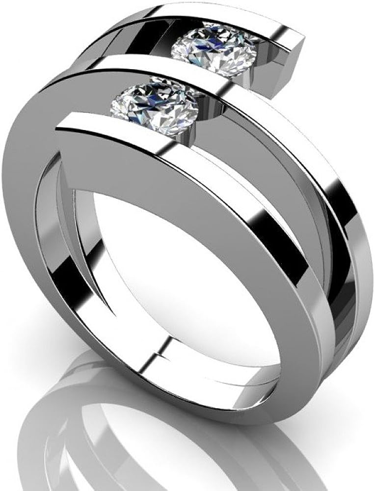 Madina Jewelry 0.60 ct Two Round Cut Diamonds Anniversary Ring in 14 kt White Gold