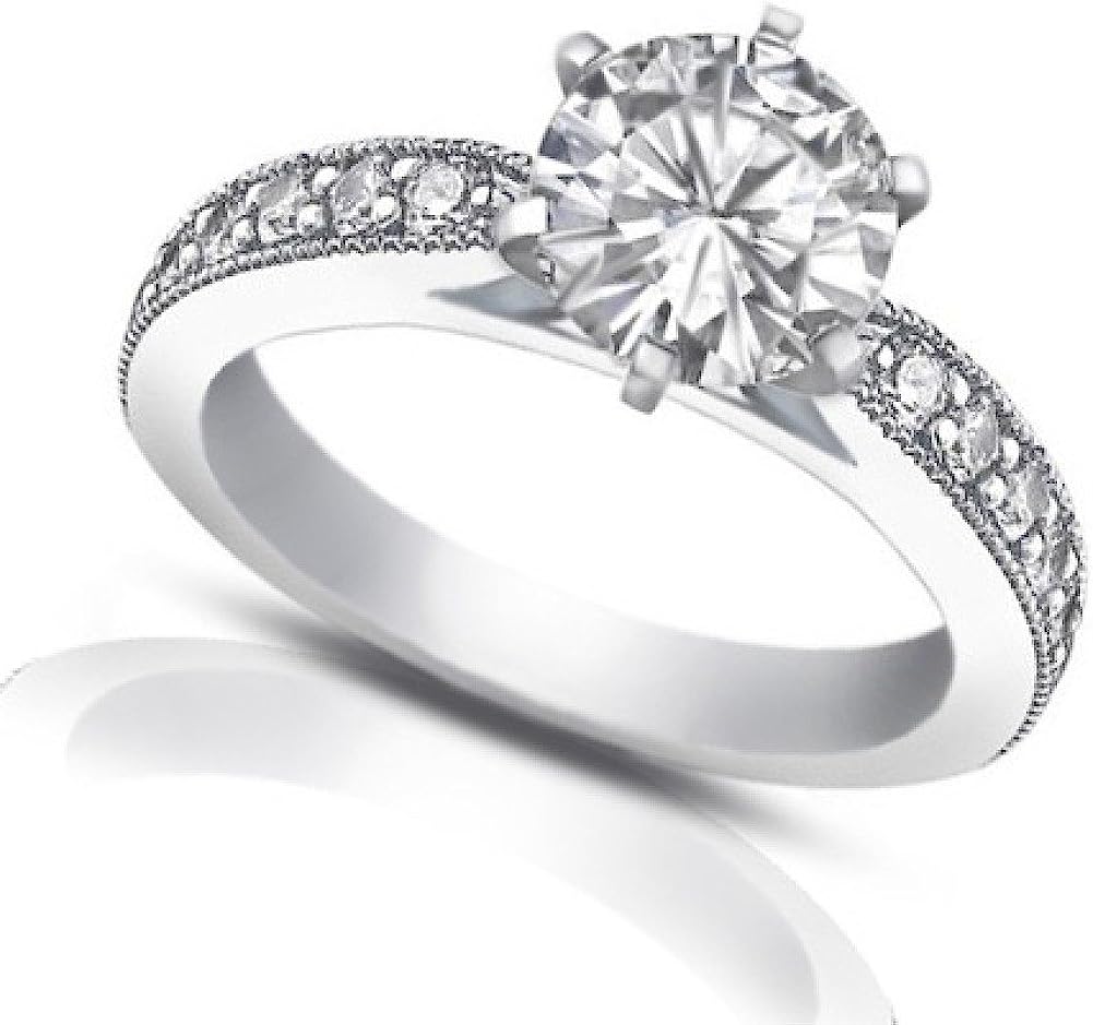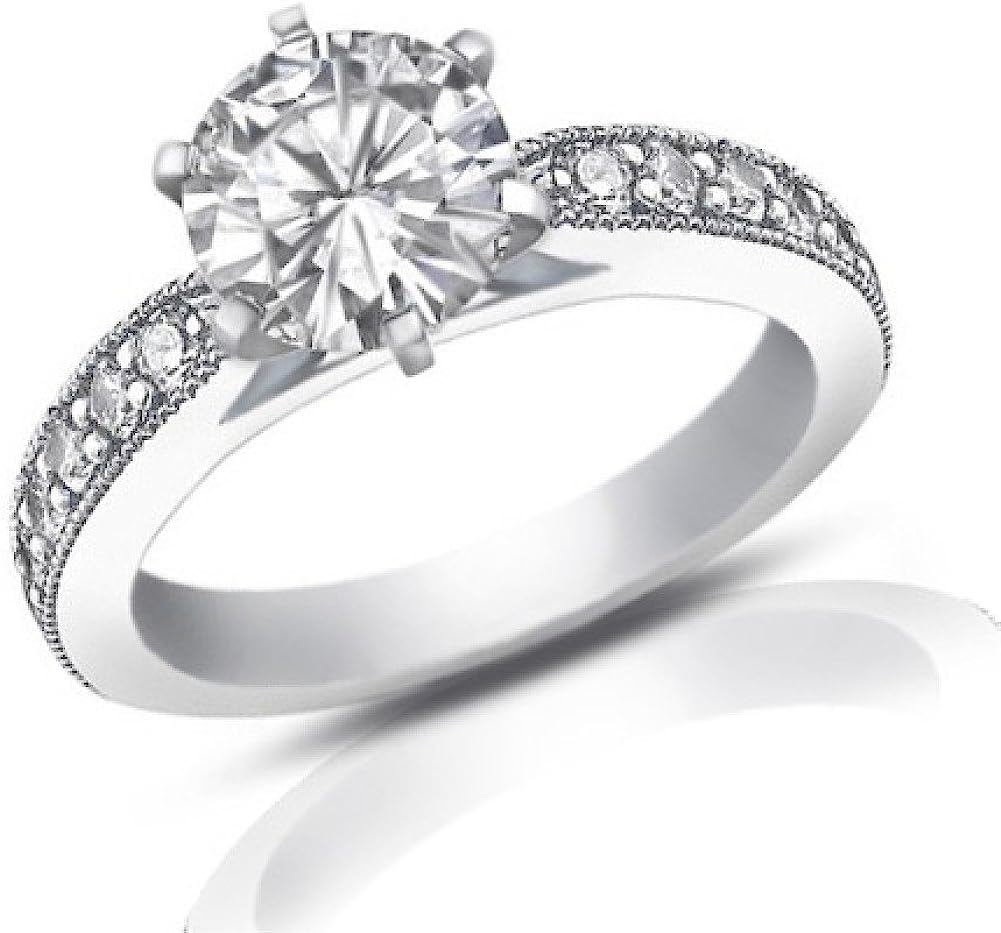 Madina Jewelry 1.40 ct Round Cut Diamond Engagement Ring Whit Millgrain on The Shank in 18 kt White Gold