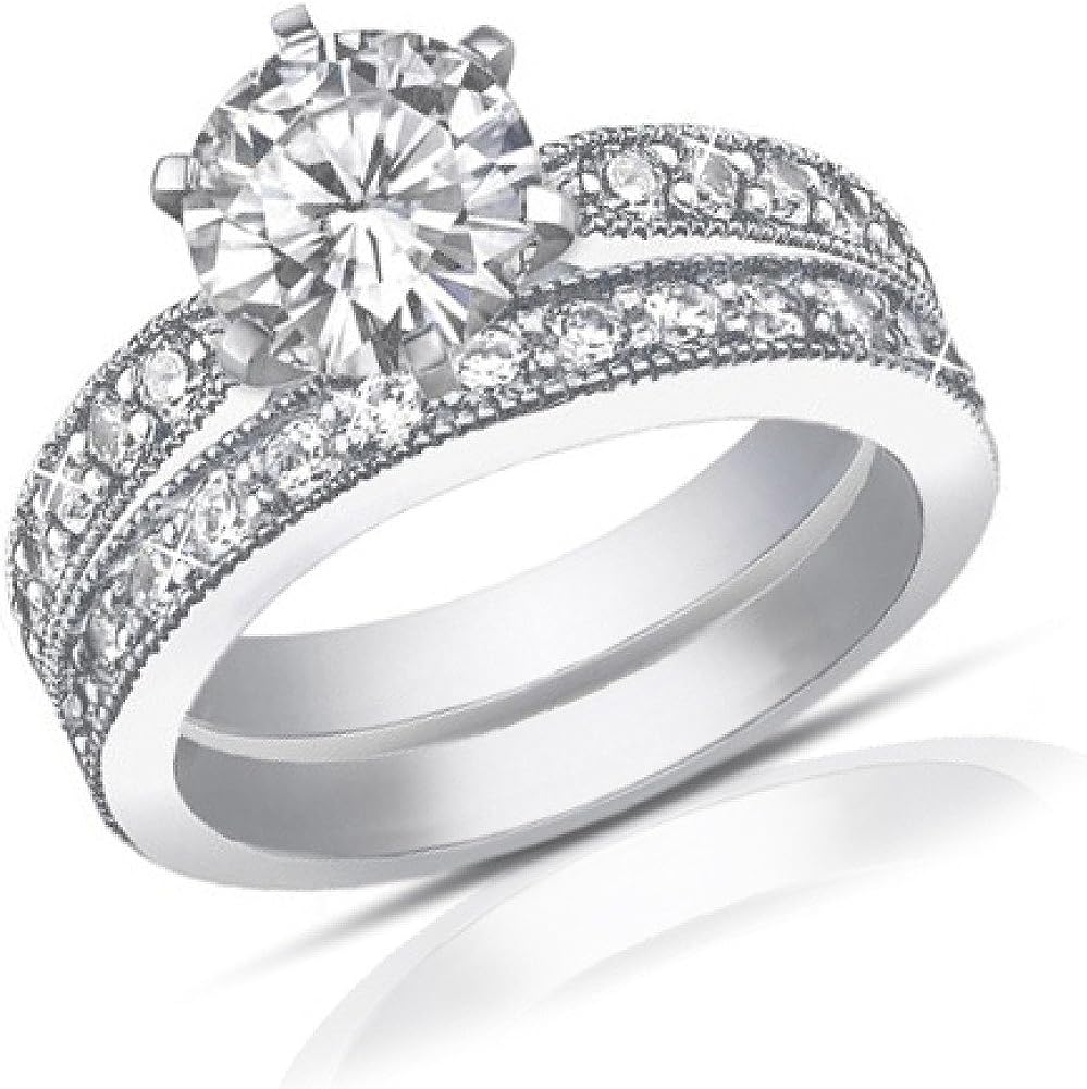 Madina Jewelry 2.25 ct Round Cut Diamond Engagement Ring Set Whit Millgrain on The Shank in 14 kt White Gold