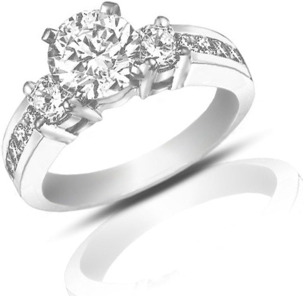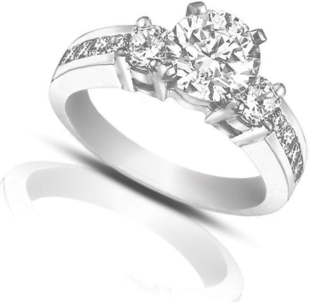 Madina Jewelry 1.25 ct Ladies Round Cut Diamond Engagement Accented Ring in 14 kt White Gold