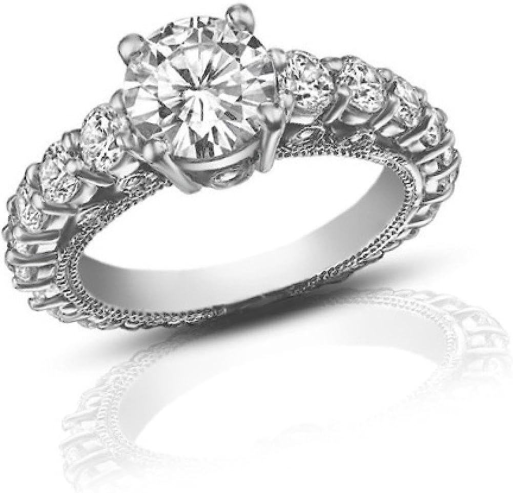 Madina Jewelry 2.25 ct Ladies Round Cut Diamond Accented Engagement Ring in 14 kt White Gold