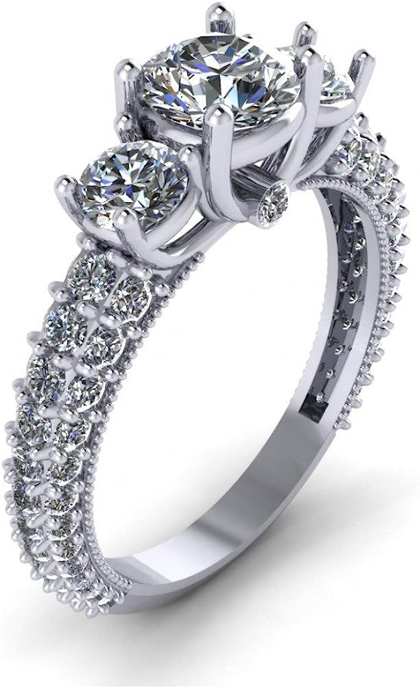 Madina Jewelry 2.60 ct Ladies Round Cut Diamond Engagement Ring with Accented Diamonds in 14 kt White Gold