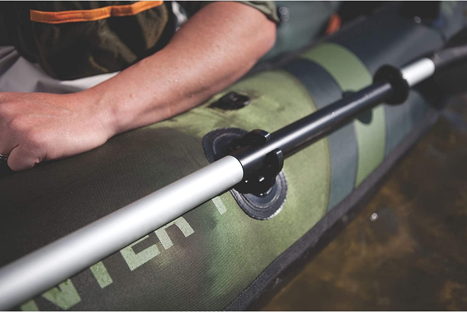 Take home your catch limit with a buddy after a day in the Sevylor Colorado 2-Person Fishing Kayak. With 18-gauge PVC, a thick tarpaulin bottom and a tough nylon cover, this kayak is durable enough to get you to your favorite out-of-the-way fishing hole. Just in case, though, the multiple air chambers will help you get back to shore. The adjustable seats will keep you paddling comfortably the whole trip. But if you want to move more easily, you can always add the Sevylor trolling motor and store your paddles in the convenient holders. The Berkley Quick Set Rod Holders let you adjust your pole angle for the ultimate hands-free fishing experience. With your hands free, it's easier to take care of your gear, which stores nicely in the mesh pockets or attached to D-rings.