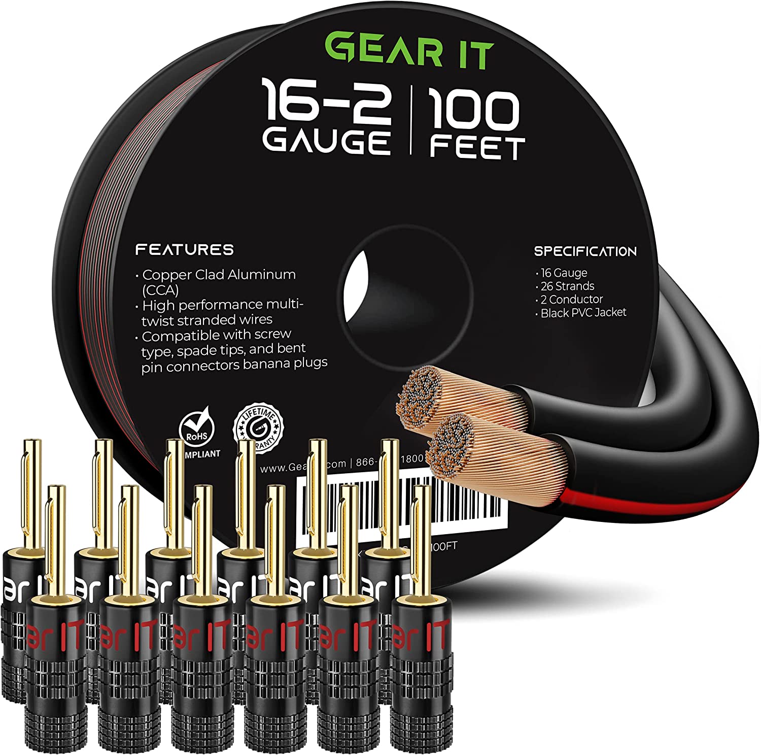 CUSTOM INSTALLATIONS – You can use this speaker wire to pair with banana plugs, spade tips, or bent pin connectors to connect your speakers to your A/V receiver or amplifier with this GearIT Pro Series speaker wire.