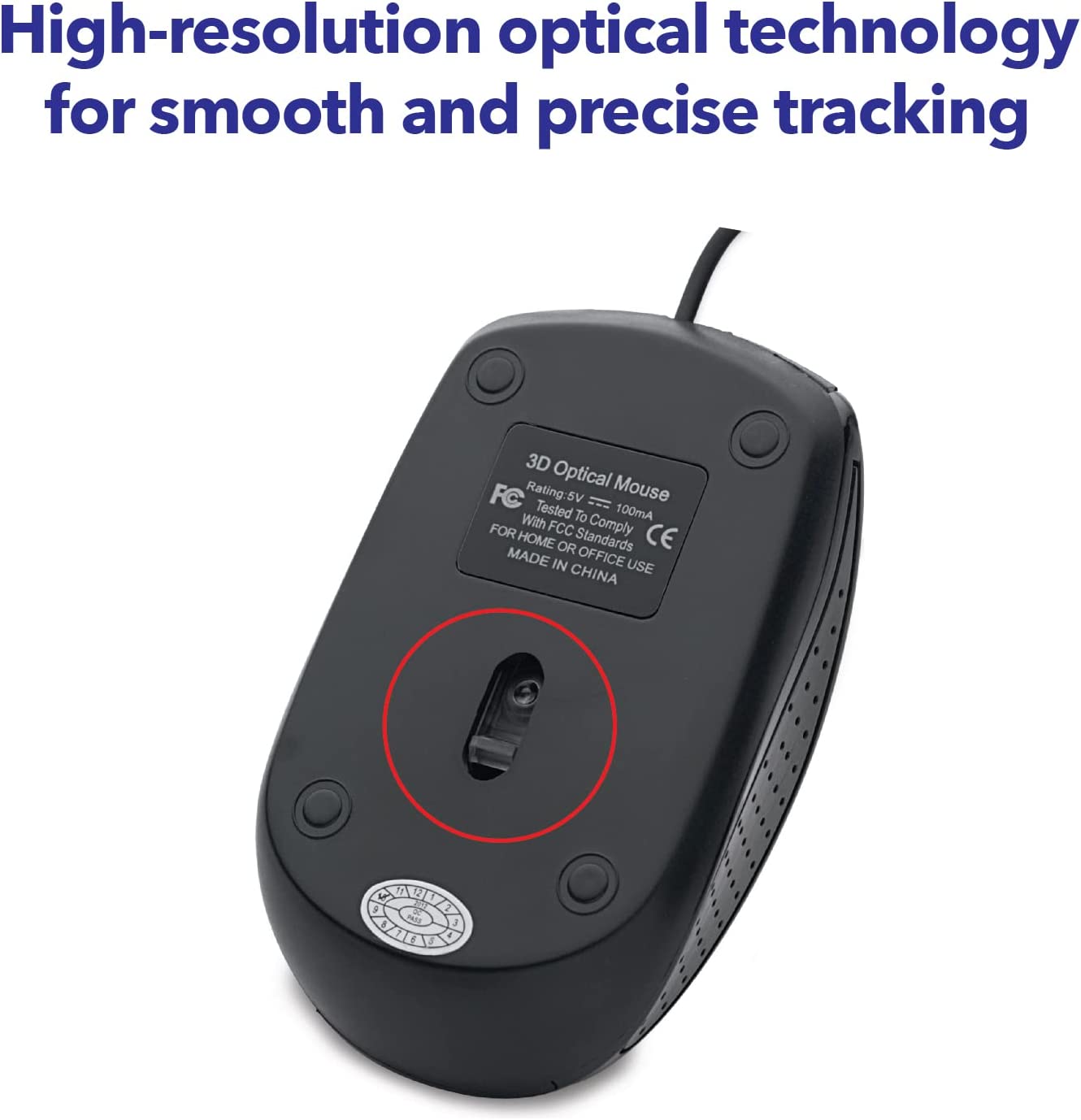 Verbatim Wired USB Computer Mouse - Corded USB Mouse for Laptops and PCs - Right or Left Hand Use, Black 98106