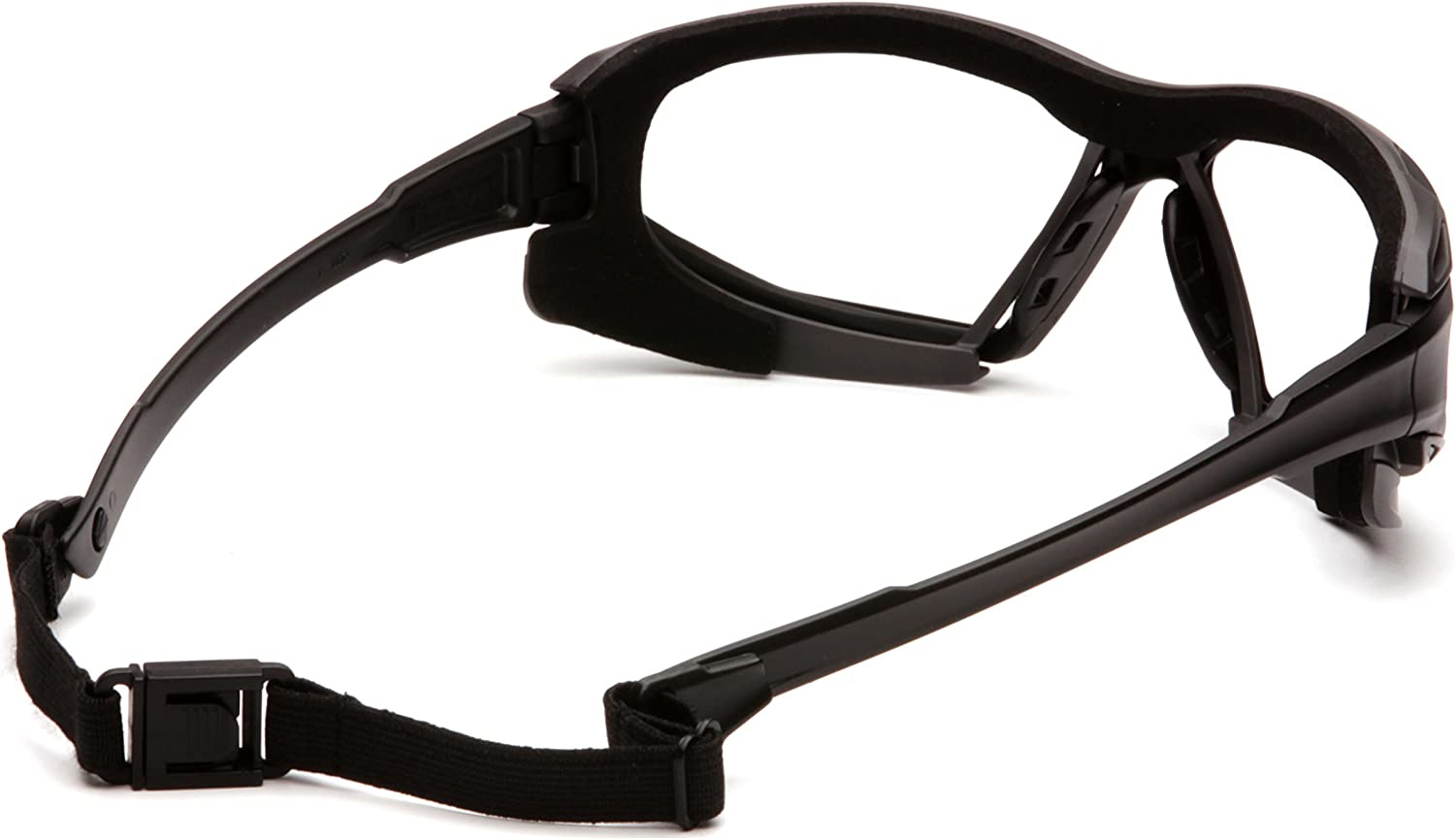 - An outer polycarbonate lens protects against the environment, while an inner acetate lens is designed to prevent fogging