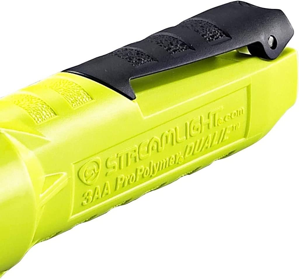 See what's ahead of you and around you with the intrinsically safe3AA ProPolymer Dualie. It produces a focused spot light and soft flood lightto illuminate your work area and help to avoid slips, trips and falls.