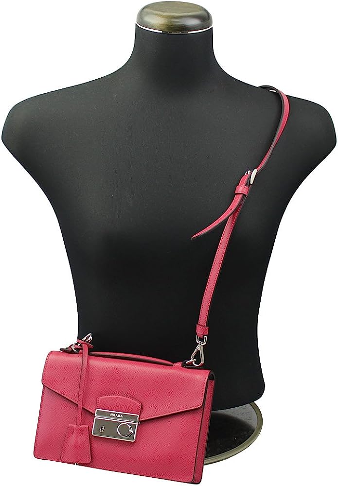 PRADA Pink Saffiano Leather Clutch Bag W/Strap Bt0960 Peonia