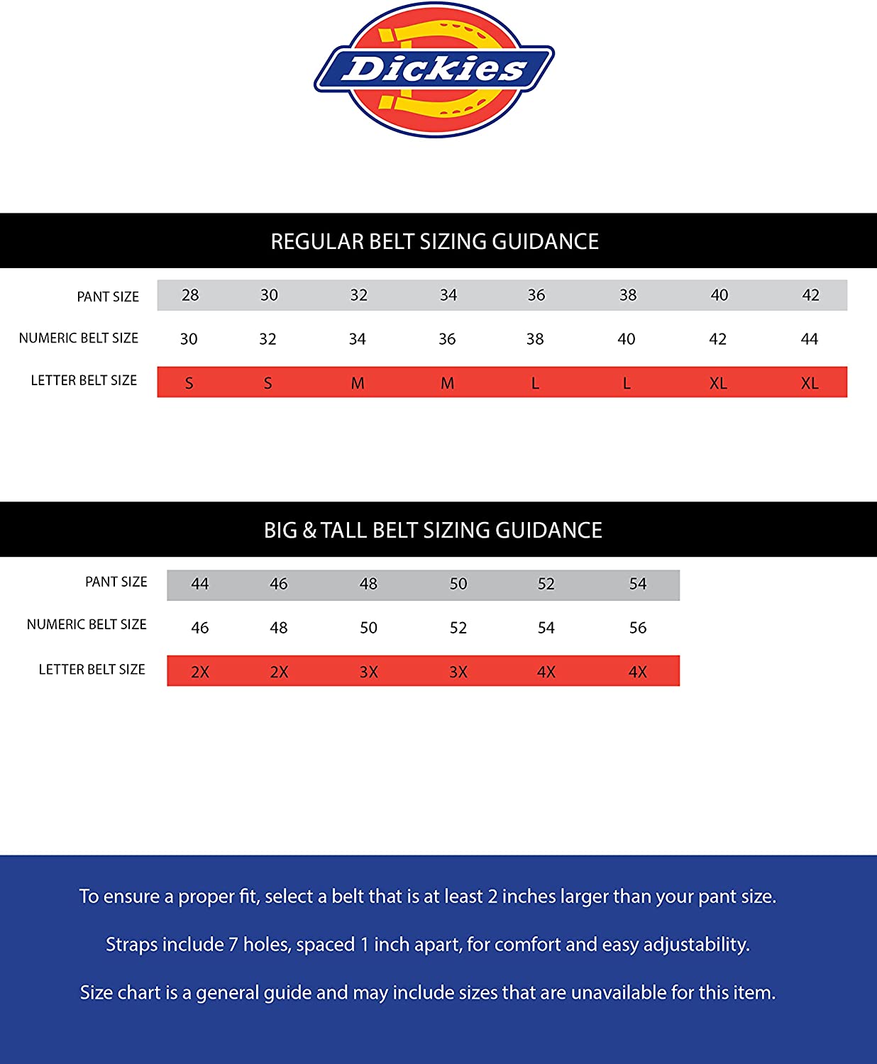 - DICKIES QUALITY: At Dickies we take pride in designing belts that are made for your everyday life. From work to family time we craft sturdy, yet fashionable belts that you can wear anytime and any wear. The buckle features a roller end with double prong.