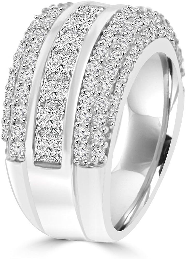 Madina Jewelry 4.10 ct Ladies Princess and Round Cut Diamond Anniversary Ring in Platinum