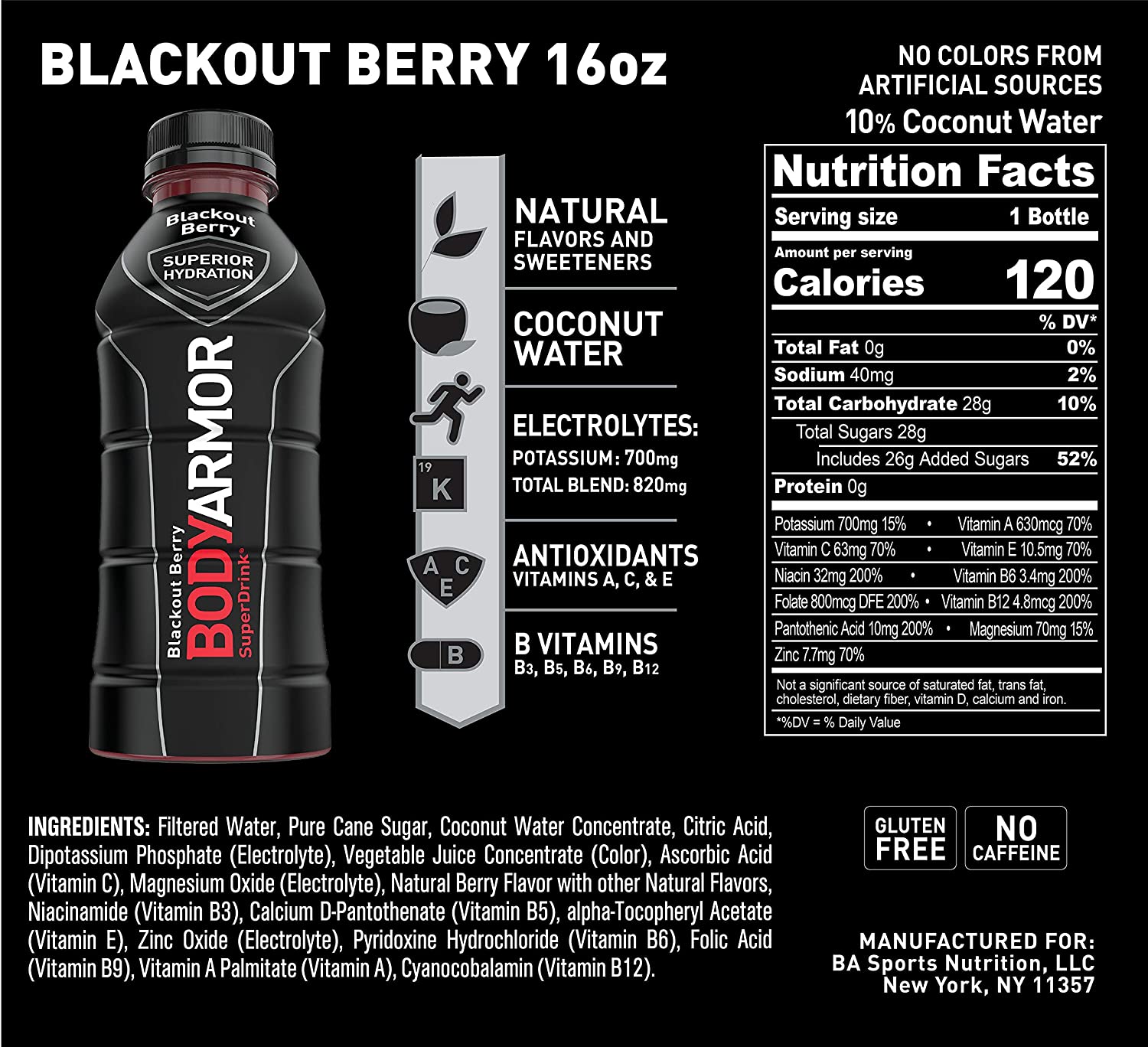 BODYARMOR Sports Drink Sports Beverage, Blackout Berry, Natural Flavors With Vitamins, Potassium-Packed Electrolytes, Perfect For Athletes, 16 Fl Oz (Pack of 12)