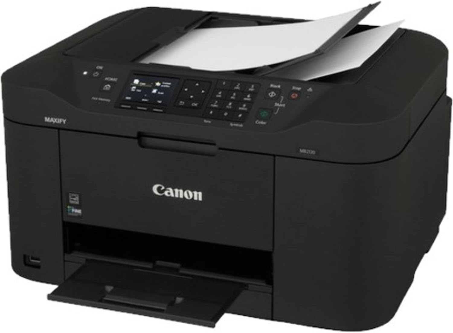 No matter what type of business you have, success is ultimately defined by the work that is done behind the scenes. You can work fast and smart with the Canon MAXIFY MB2120 Wireless Home Office All-in-One Printer, helping you to get through your workload. Specifically designed to help meet the needs of home-based businesses of 1-4 users, it delivers crisp, colorful prints of your business documents quickly, cost-effectively, and reliably. The MAXIFY MB2120 printer boasts a quick first printout time of 6 seconds with print speeds up to 19. 0 ipm (B&W)/13. 0 ipm (Color). Built for big jobs, it has a large 250 sheet paper cassette and 20, 000 page duty cycle. The efficient MAXIFY ink tanks deliver a high page yield from one set of ink and the Dual Resistant High Density (DRHD) ink system produces laser sharp text that is smudge and highlighter resistant. The entire MAXIFY lineup features built-in Wi-Fi and is fully compatible with the Canon PRINT app. This makes it easy to share and print information directly from your tablet and smartphone via select popular Cloud services. You can also easily scan directly to your mobile device. Best of all, the MB2120 printer is backed by 100% U. S. -based customer service and support.