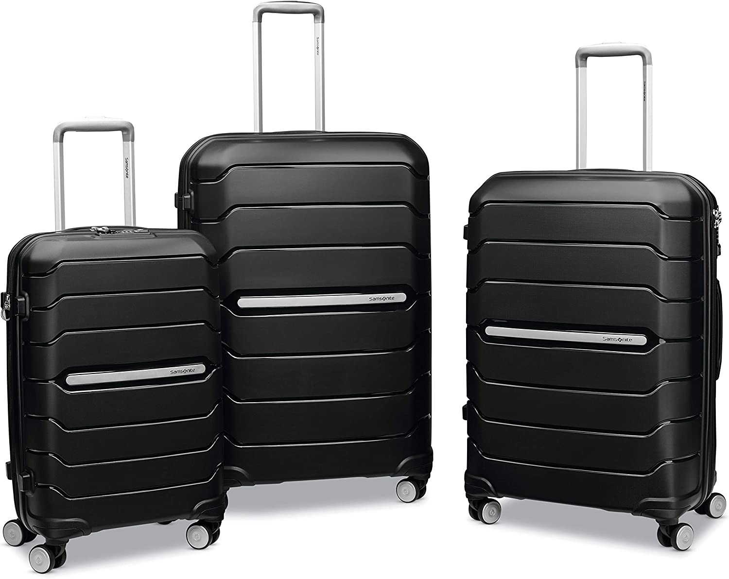 Samsonite Freeform Hardside Expandable with Double Spinner Wheels, Checked-Large 28-Inch, Black