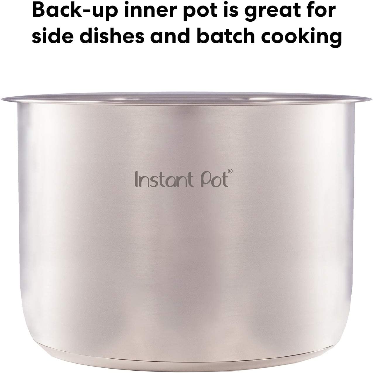 The Genuine Instant Pot inner cooking pot is stainless steel food grade 304 (18/8), with no chemical coating, and a 3-ply bottom for even heat distribution. The polished surface makes food stick less and is easier to clean. Designed with inner markings at half and 2/3 for pressure-cooking safety. Having a secondary Instant Pot inner pot makes it convenient and easy when preparing multiple dishes with your Instant Pot cooker.