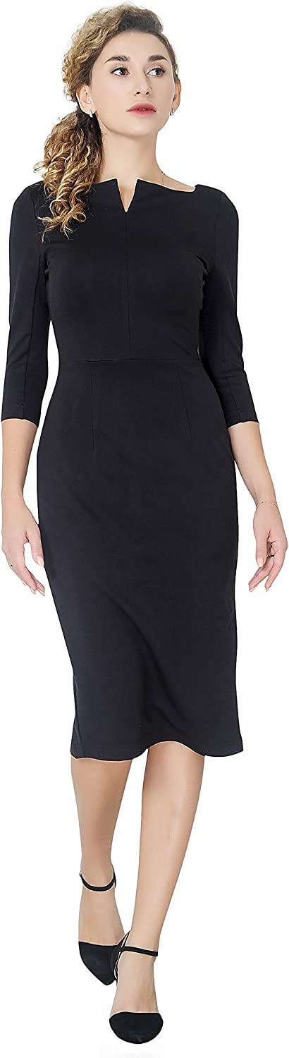 Made by Marycrafts, this dress, undoubtedly owns elegant and modest features to help you inner lights shine in every occasion FEATURES: - SQUARE SLIT NECK - 3/4 SLEEVES - PENCIL SILHOUETTE - COPPER BACK ZIPPER - MIDI LENGTH (43-45")