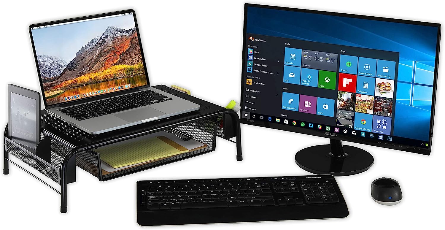 SimpleHouseware Metal Desk Monitor Stand Riser with Organizer Drawer