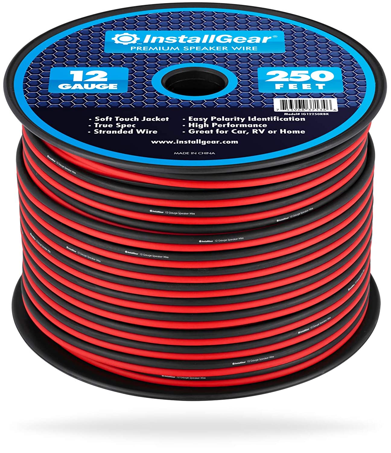 100-FEET (30.48m) [ RED/BLACK 12 GAUGE SPEAKER WIRE ] - The lower the gauge number, the thicker the wire. Thicker wire presents less resistance to current flow.