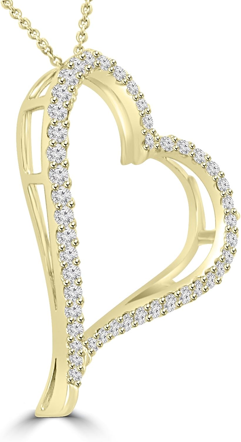 Madina Jewelry 1.39 ct Round Cut Diamond Heart Shape Pendant Necklace (G Color SI-1 Clarity) in 14 kt Yellow Gold