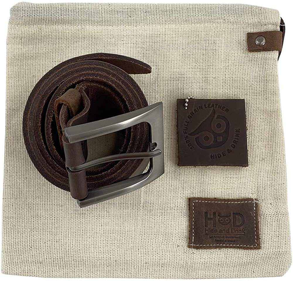 HANDMADE FROM SOFT & ATTRACTIVE FULL GRAIN LEATHER: Hide & Drink’s belts are hand cut and handcrafted using the highest quality of leather that you will find, namely Full Grain Leather. The quality of this leather ensures a long lasting life and durability. After time and use, the leather will attain a beautiful and unique patina. Each belt is made with a width of 1.5 inches and the leather used is 3.5mm thick.