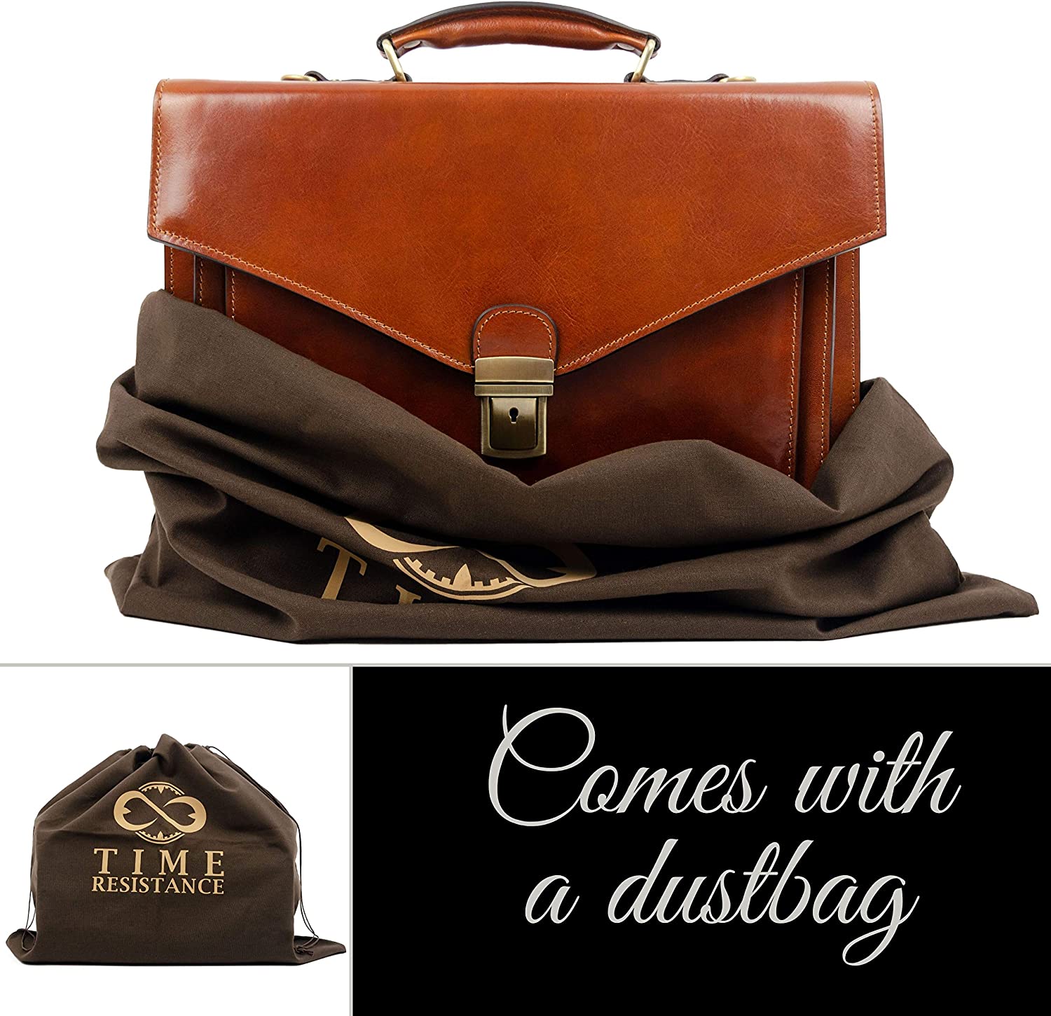 Time Resistance Leather Briefcase for Men Handmade Italian Laptop Bag Classy Orange Brown Attache Case
