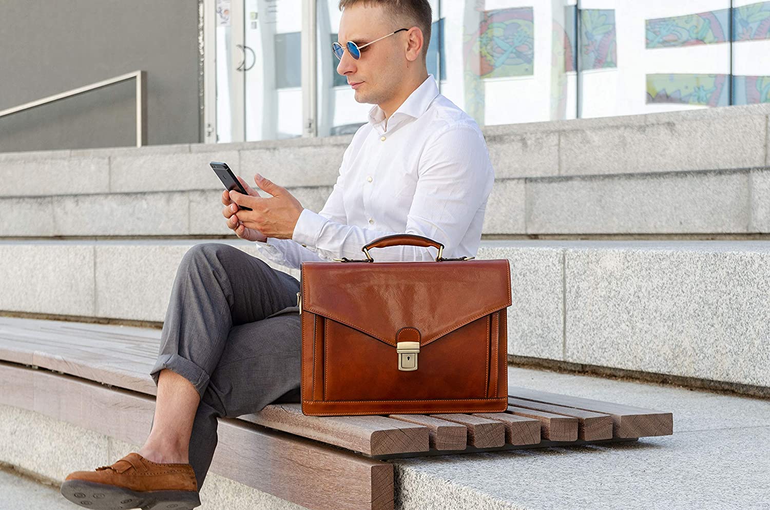• ✔️ BAG THAT MAKES A STATEMENT – did you know you have only 7 seconds to make a first impression? And every detail matters - this eye-catching leather briefcase will help you to turn heads and catch the COMPLIMENTS, make you feel more confident and good-looking