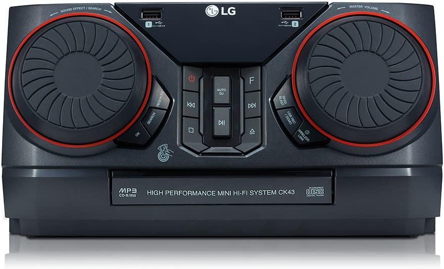 The CK43 shelf system delivers Features and performance beyond its compact size, starting with twin 51/4-inch woofers that rock the house. The main unit has a modern, horizontal design including an EZ file search wheel to scan hundreds of digital tunes in seconds. In addition to CD and FM sources plus aux and dual USB inputs, the Bluetooth connectivity enables a host of wireless options including wireless party link and wireless TV sound sync that can expand television audio to 300 powerful watts.