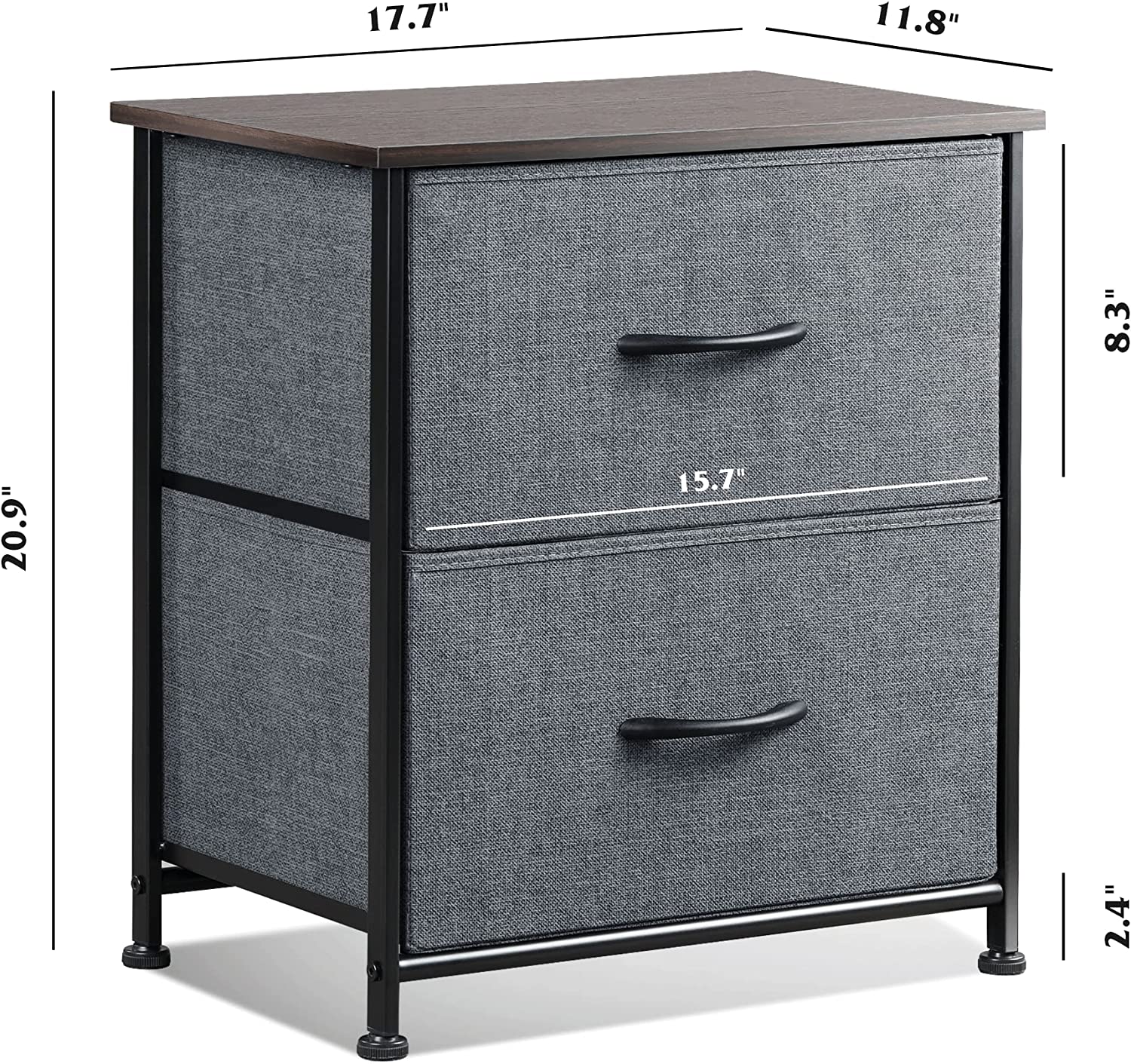 SPACIOUS STORAGE: The 2 fabric drawers of the small dresser offer large storage space for nighttime necessities. The wood top is ideal to place alarm clock, phone, charger, eyeglasses, keeping them in your reach.