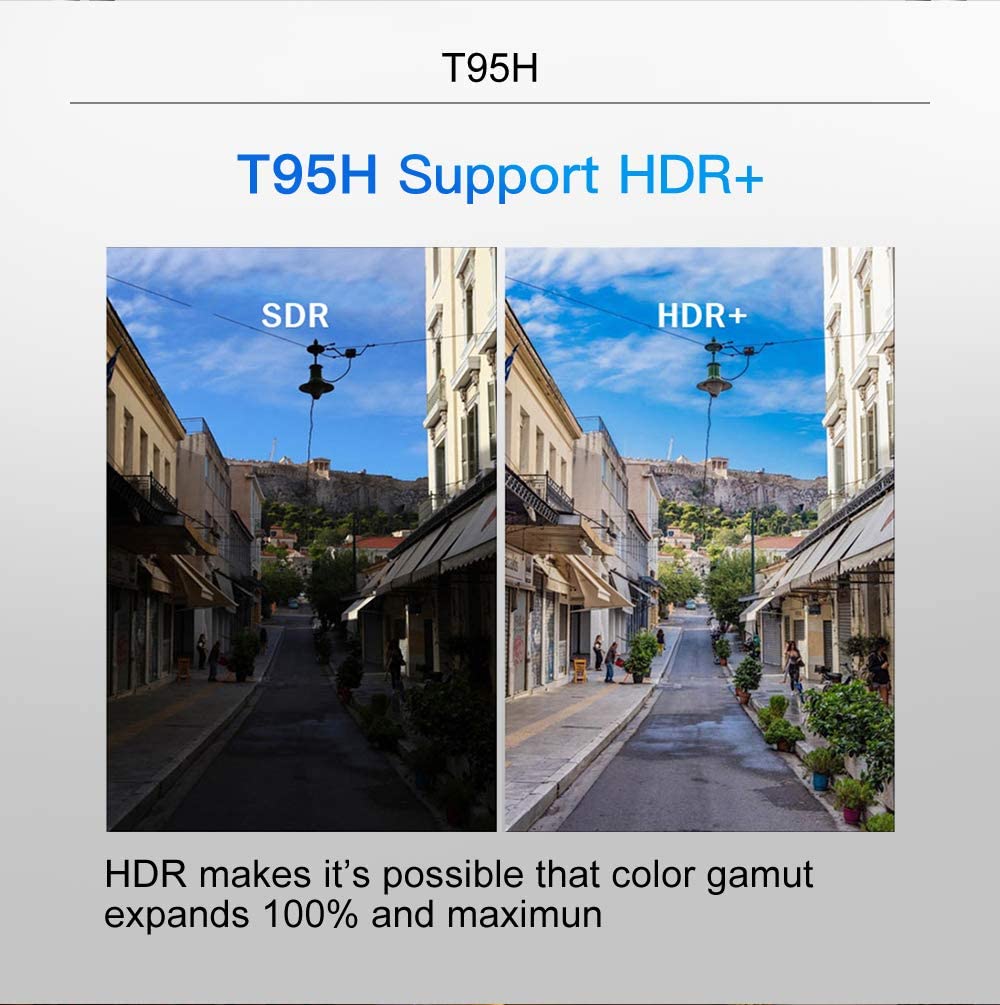【6K Ultra HD and HDMI 2.0】T95H TV box with upgraded HD-MI2.0, broadband up to 18Gbps, nearly 100% higher than the traditional 1.4 interface data throughput, showing better 6K resolution, much clearer sharpness, and more vividness than the 4K box. In addition, you can share movies, music, photos on android/IOS devices on the big screen, and share the best speakers via DLNA/Airplay to enjoy the best entertainment experience!