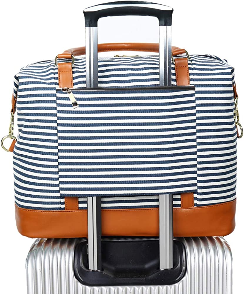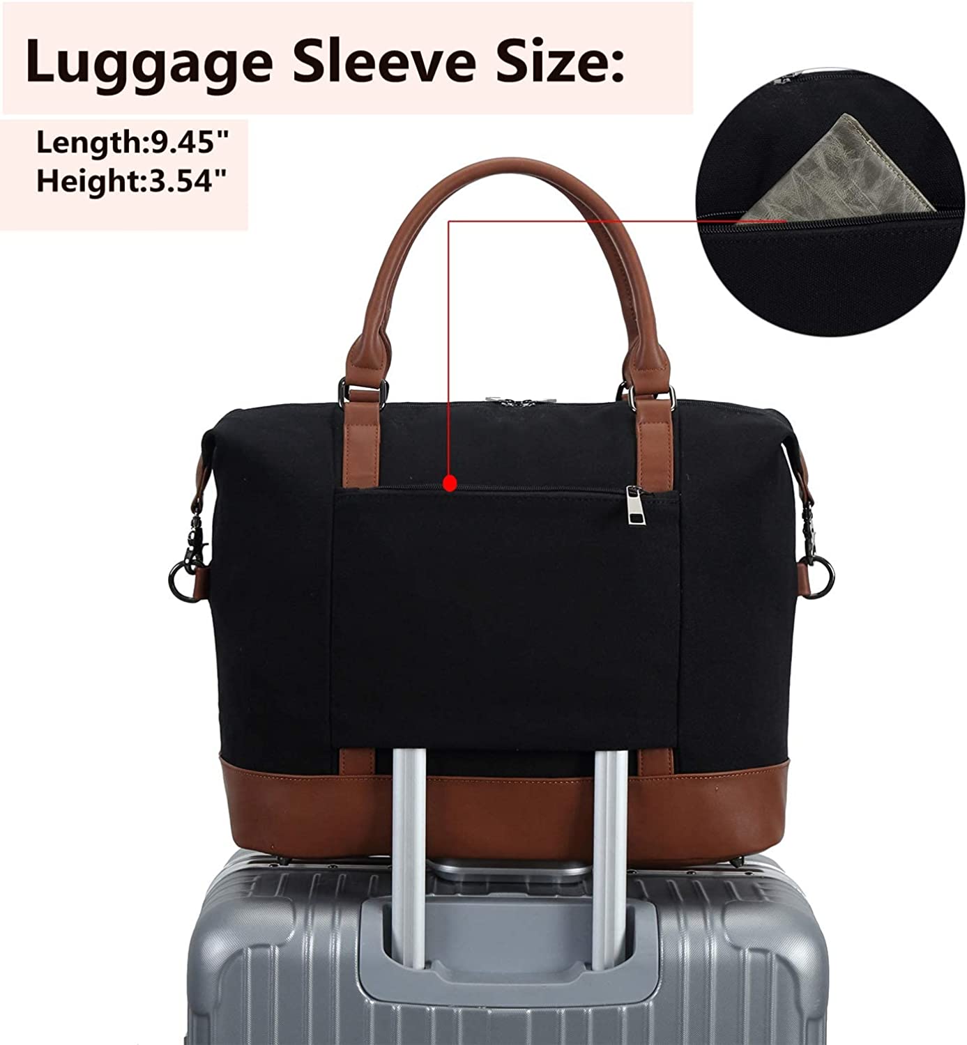 Bluboon Women Ladies Canvas Weekender Bag Overnight Carry-on Tote Duffel in Trolley Handle