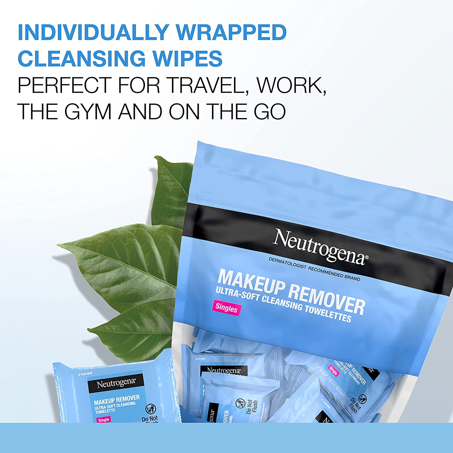 20-count of individually wrapped pre-moistened Neutrogena Makeup Remover Face Wipe Singles. Individually wrapped facial cleansing towelettes are protected so you always have a fresh and effective wipe for complete cleansing and makeup removal