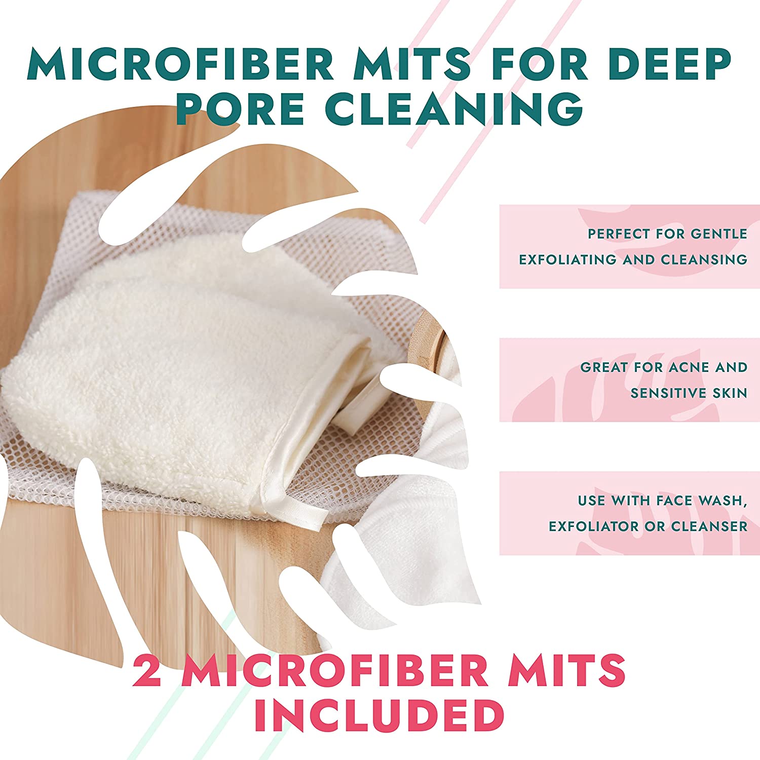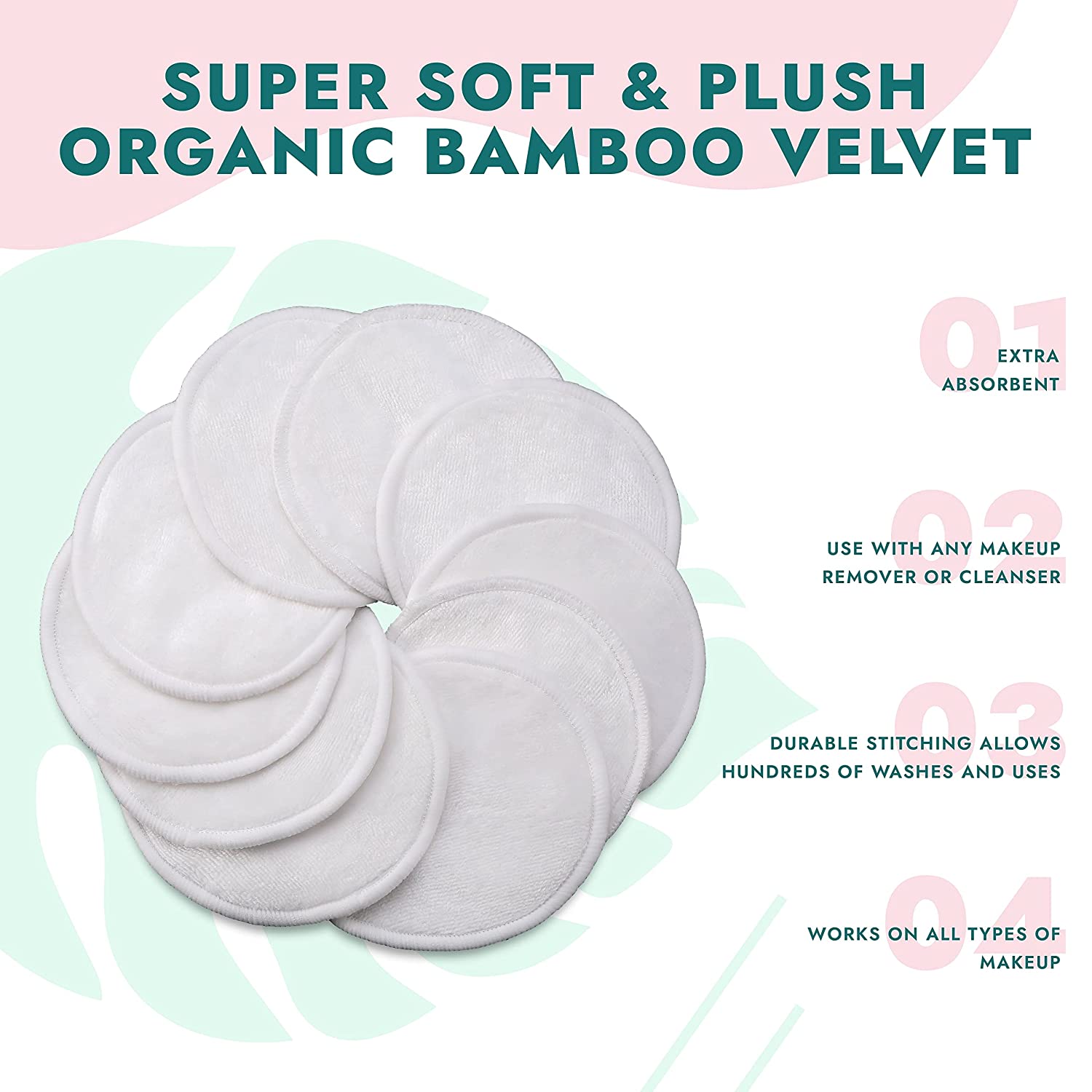 • CLEANER, HEALTHIER SKIN: Remove makeup, dirt, oil, sunscreen and dead skin cells to reveal a beautiful complexion. Our double layer, reusable makeup remover pads are made from ultra soft, 100% Organic Bamboo and Cotton. Our microfiber facial cleansing washcloth gloves exfoliate skin for a deep clean feeling.