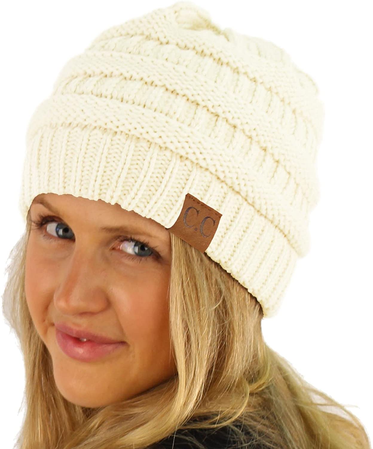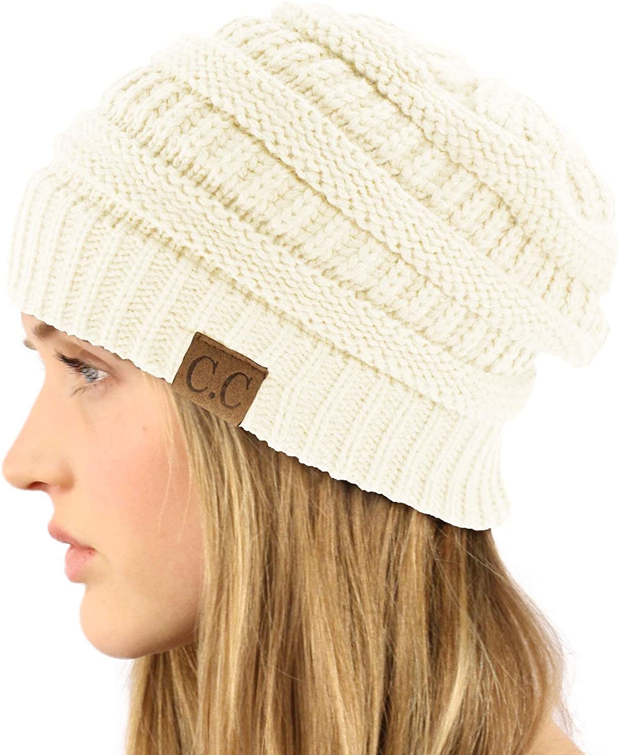 The original Exclusive C.C Unisex Stretchy Knit Beanie Skull Hat Winter Warm Chunky Ribbed Cable Knit Slouchy Beanie Ski Hat Cap