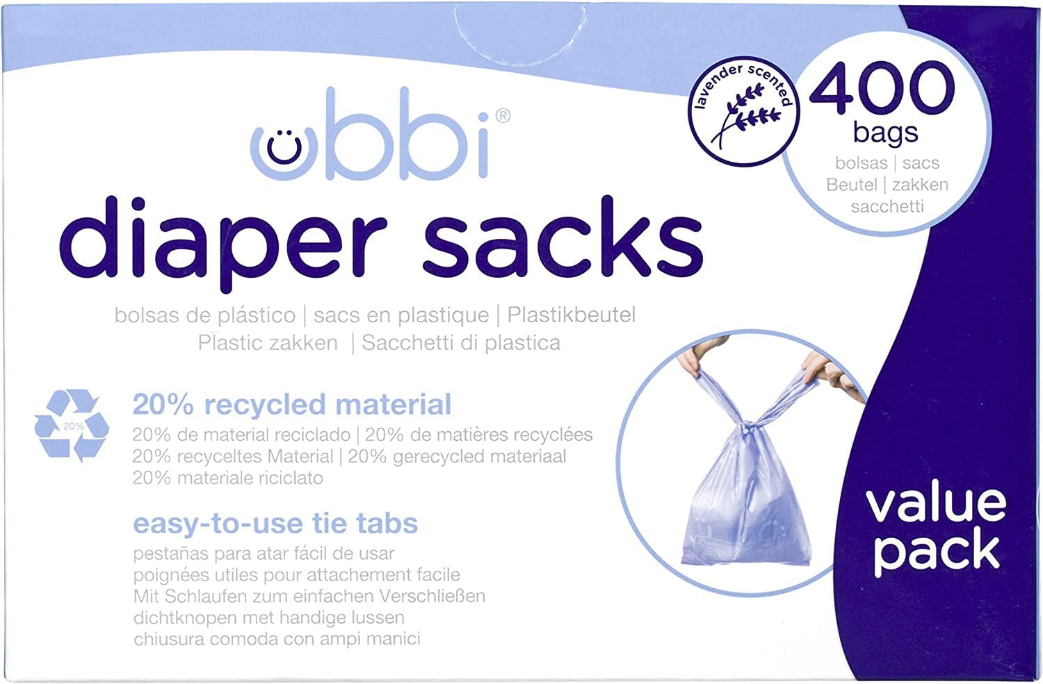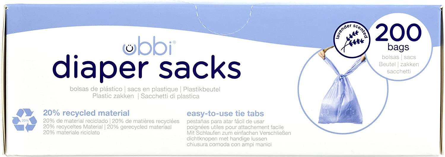 Ubbi Disposable Diaper Sacks, Lavender Scented, Easy-To-Tie Tabs, Diaper Disposal or Pet Waste Bags, 200 Count