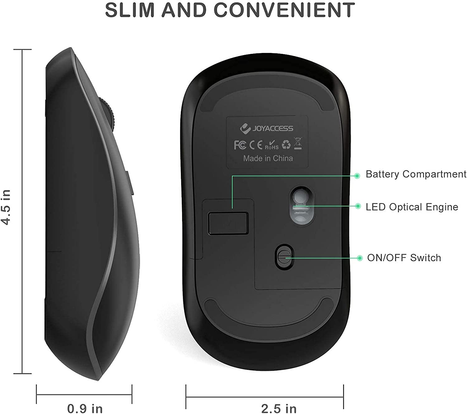 【PLUG AND PIAY】Tiny wireless receiver conveniently slots into your computer's USB port, taking up minimal space. USB-receiver stays in your PC USB port or stows conveniently inside the wireless mouse when not in use. Perfect for work and entertainment in home or office.