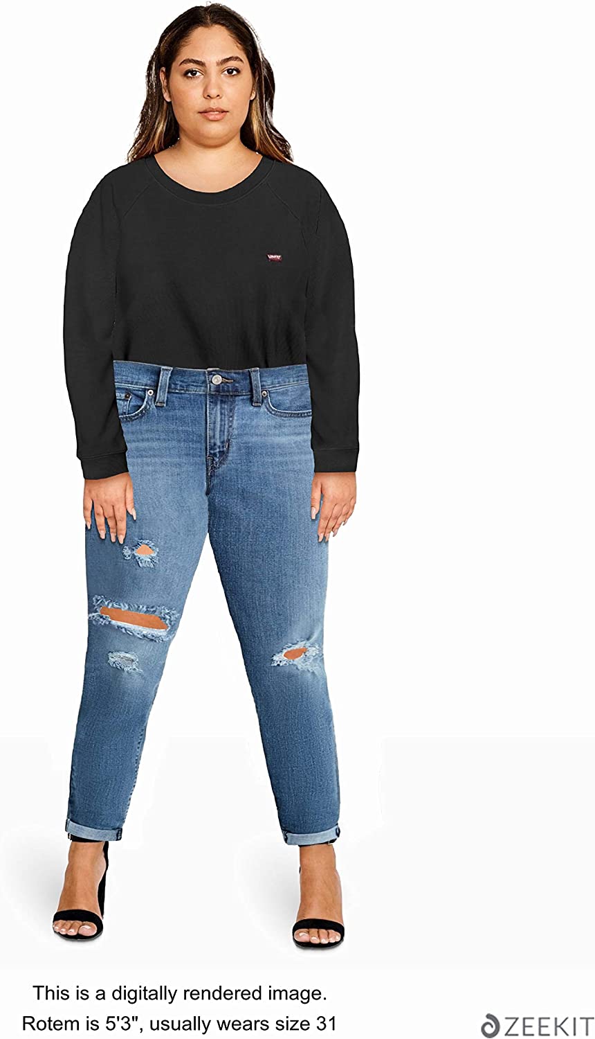 The model in the image is 5' 10.5" and is wearing 27 x 27 (unrolled), 25 (rolled).