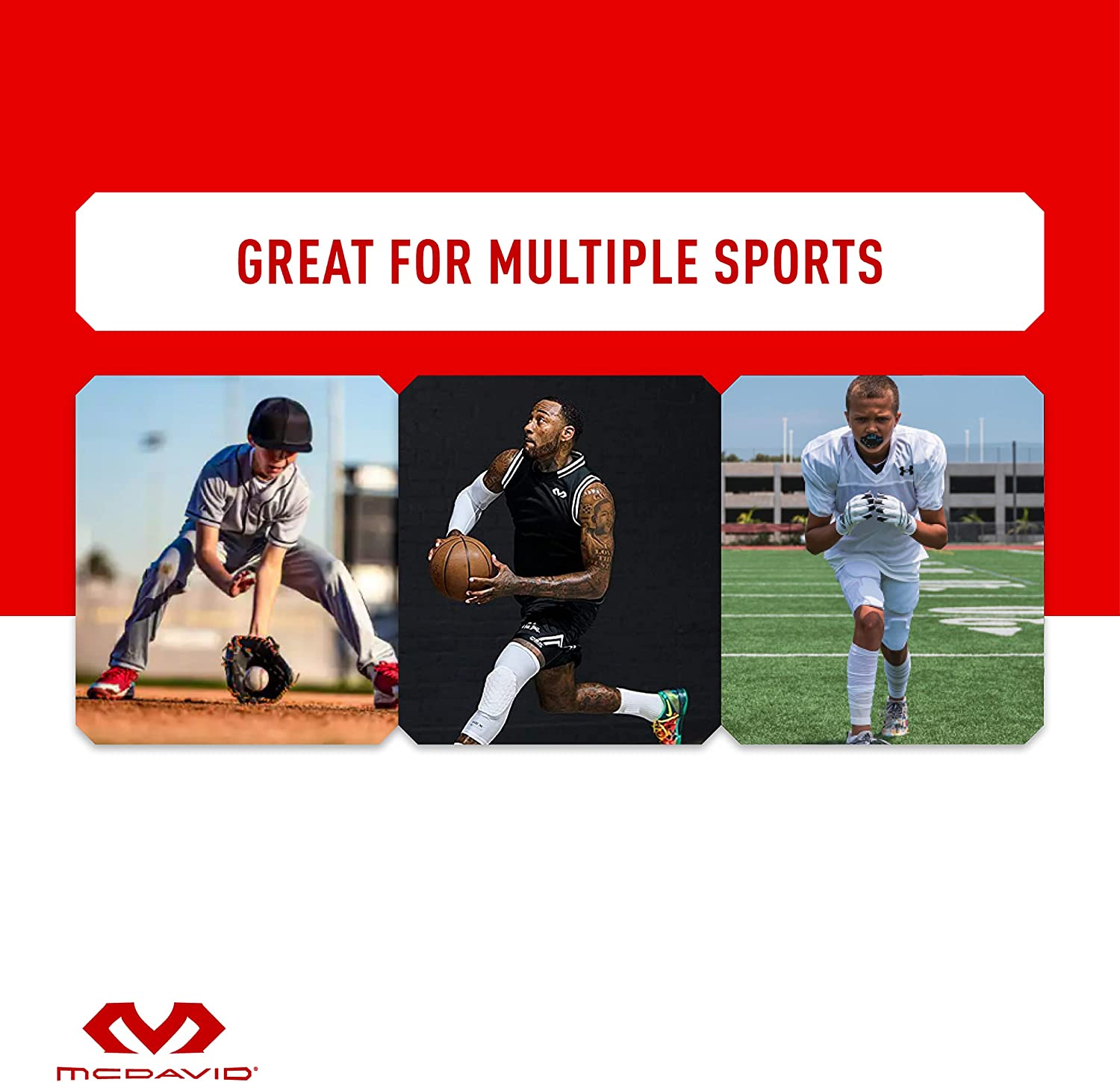 The support you need. McDavid's extended leg sleeves feature 9mm Hex technology and are a favorite among pro and collegiate players. Their extended length allows for better fit as well as added protection against cuts and scratches. McDavid's hDc Moisture Management Technology will keep you cool and dry all day or all game long.