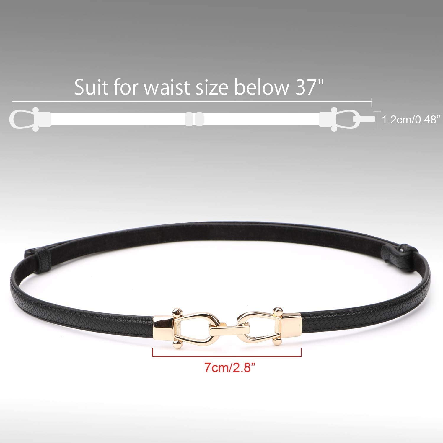 • ▶SIZE INFO--- This leather skinny belt is fully adjustable.Perfect for waist size below 37",belt width 0.48";Buckle length: 2.8",buckle width: 0.72".(Consider about 2cm error)