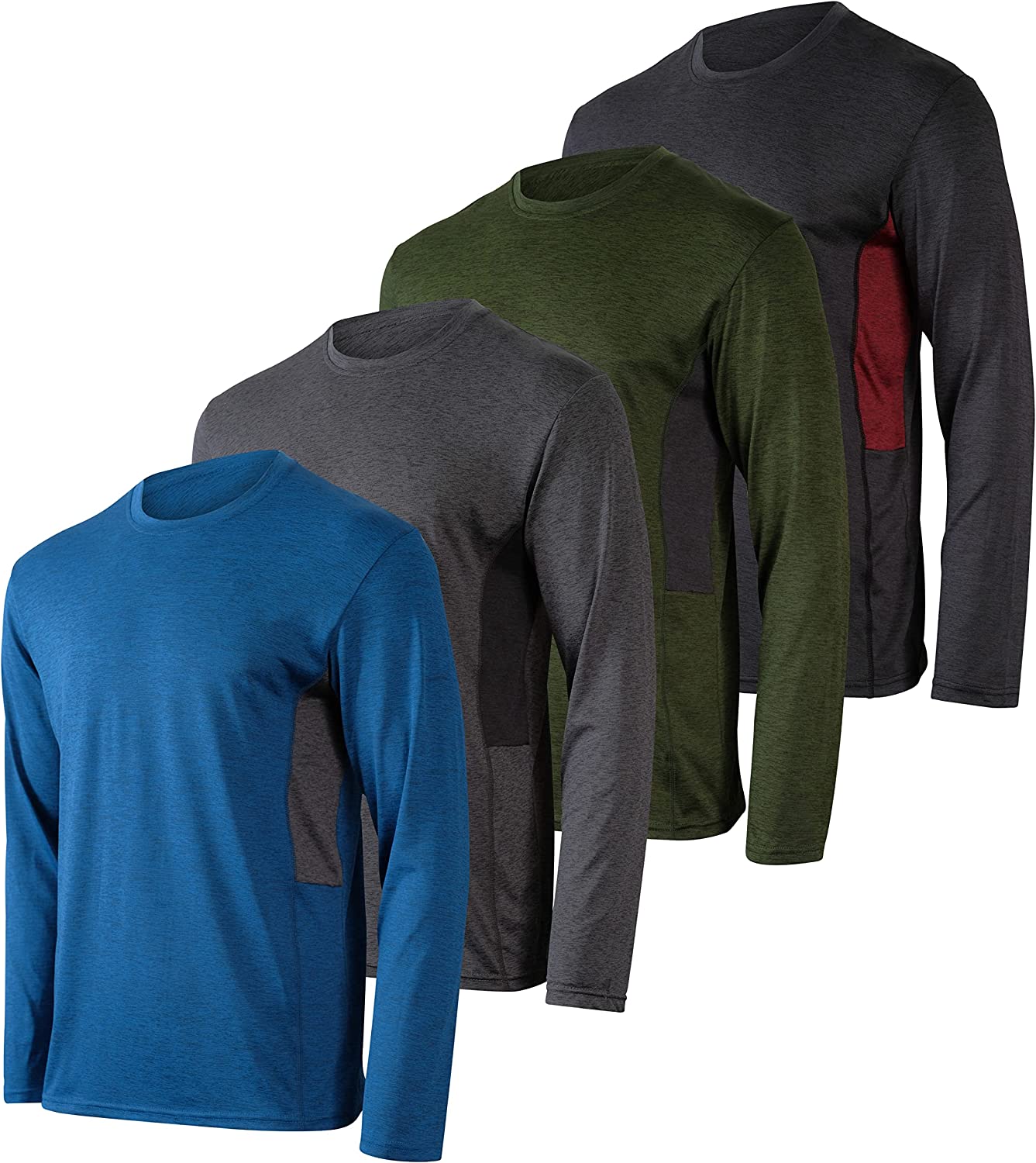 4 Pack: Men's Dry-Fit Moisture Wicking Performance Long Sleeve T-Shirt, UV Sun Protection Outdoor Active Athletic Crew Top