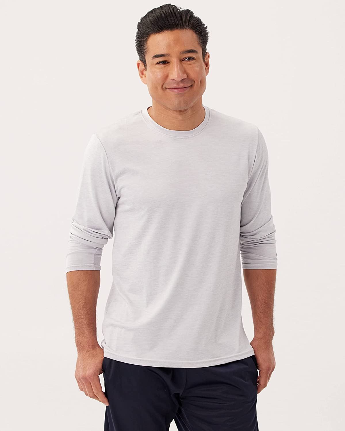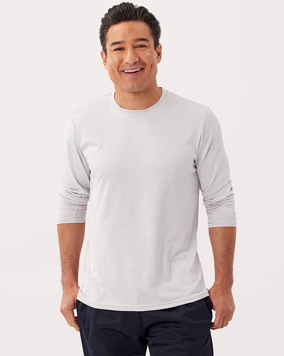Designed for a comfortable experience. Crew-neck provides a nonrestrictive fit; Long-sleeve allows for a wider range of motion