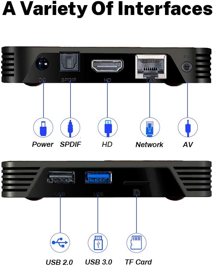 【Newest Android 11.0 OS】Android tv box equipped with Latest Android system, powered by RK3318 Quad core cortex-A53 Ultra high frequence CPU, which ensure the android box running stable and smooth for loading movies, pictures and games without buffer.