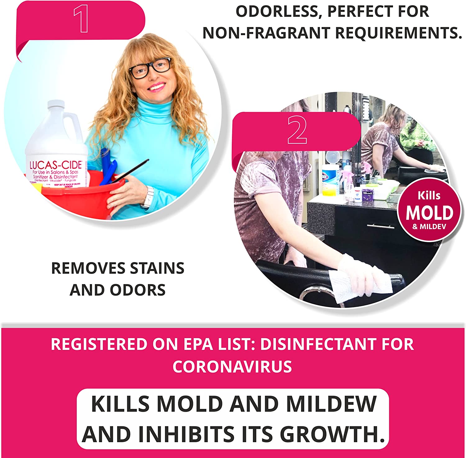 ECO-FRIENDLY & ODORLESS: The iconic pink liquid is trusted and effective earning its reputation for creating a safe and clean salon. LUCAS-CIDE concentrate has no added dyes, VOC’s or fragrances. It is economical for use in every salon, barbershop and spa!