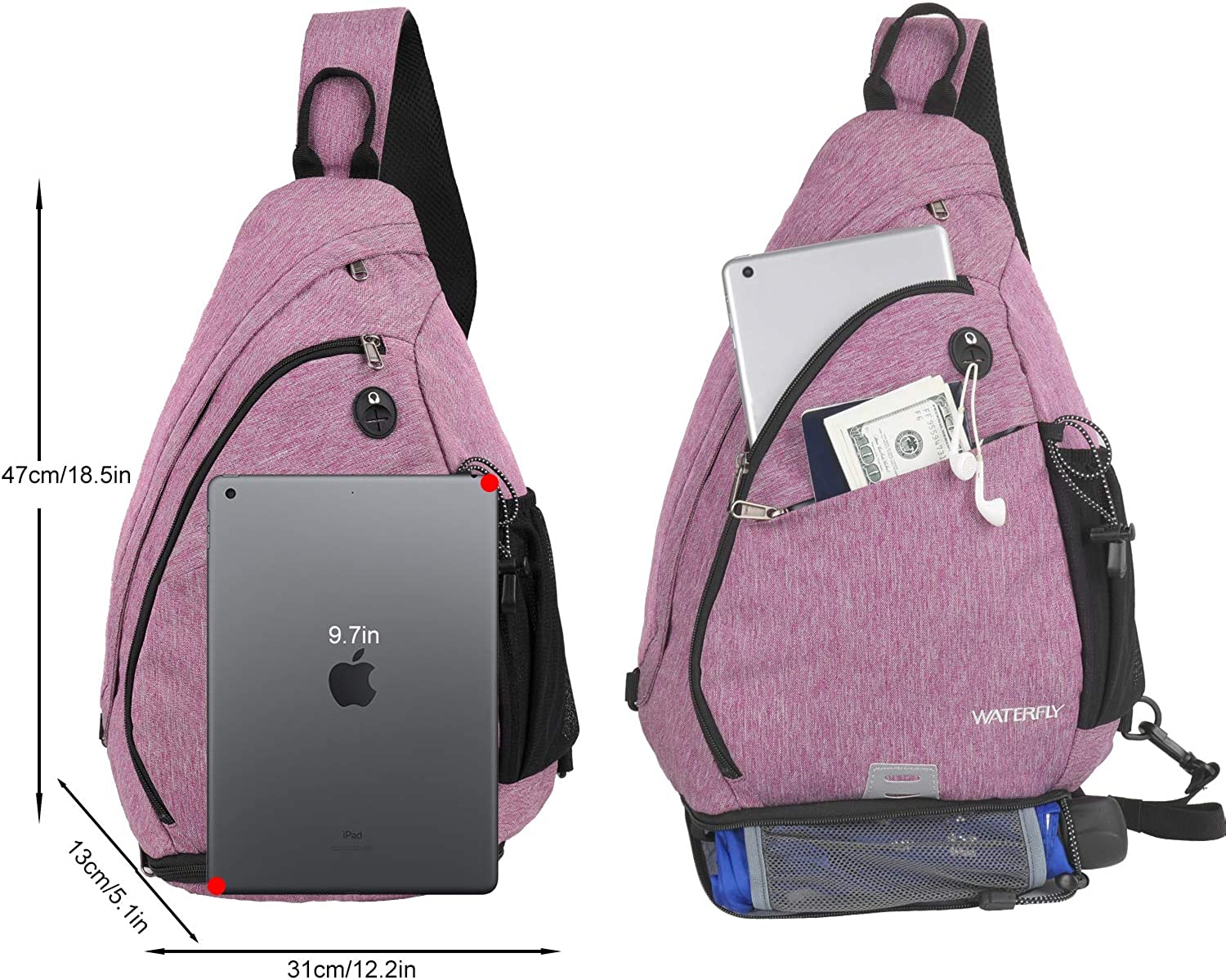 BREATHABLE & SOFT COMFORT PADDING: Protective padding on the back and bottom of the main pocket provides cushioning. The unique shape is more conducive to perspiration and is suitable for long-term carrying. There is also a convenient headphone hole on the front of the bag, so you can easily enjoy music